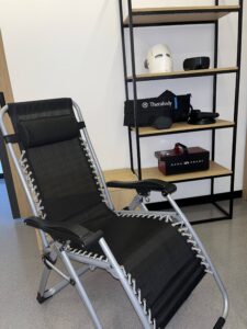 Podczas seansu z SmartGoogle i TheraFace Mask można zrelaksować się na wygodnym leżaku.